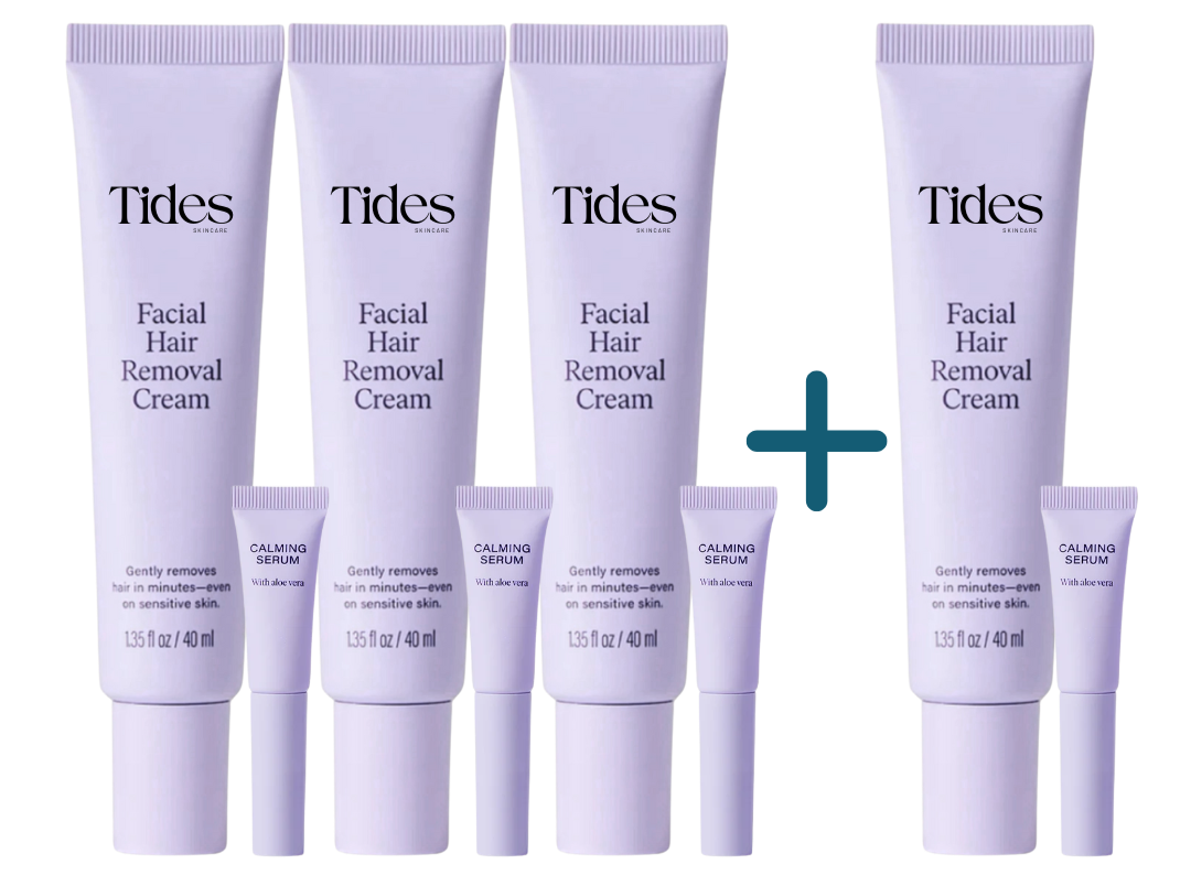Tides Facial Hair Removal Cream is gently formulated with soothing ingredients like aloe vera and bisabolol. It can be used on mild, non-inflamed acne, as long as you perform a patch test beforehand. Do not apply to open blemishes or irritated areas. When in doubt, we recommend consulting a dermatologist before use.